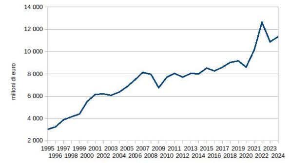 Nel 2024 le importazioni di questo mercato hanno registrato un valore di 439 milioni euro. Si tratta di livelli in crescita negli ultimi anni (superiori del 7.6 per cento ai livelli prepandemici), ma ancora lontani dal massimo storico, toccato nel 2007 (643 milioni di euro).
